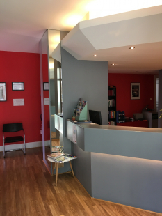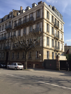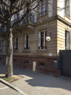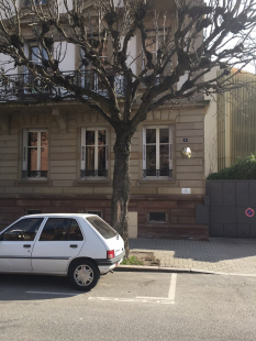 L'office notarial est situé au rez-de-chaussée d'un immeuble en bordure du quartier de la Neustadt à proximité de l'Ill.